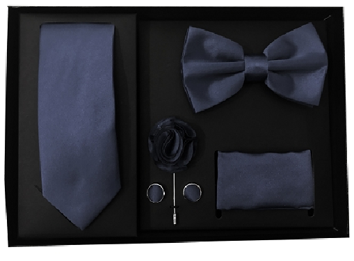 Mens NAVY Gift set comes in a Gift Box. Set Includes Adjustable Pre-tied Bow Tie, Self Tie Neck Tie, Lapel Pin, Cuff Links, and a Pocket Handkerchief. Now You Can Get all Your Accessories to Match in One Simple Purchase!This 5 Piece Set is Perfect For Weddings, Parties, or Simply Just Dressing Up! Many Matching Styles, and Colors Available.