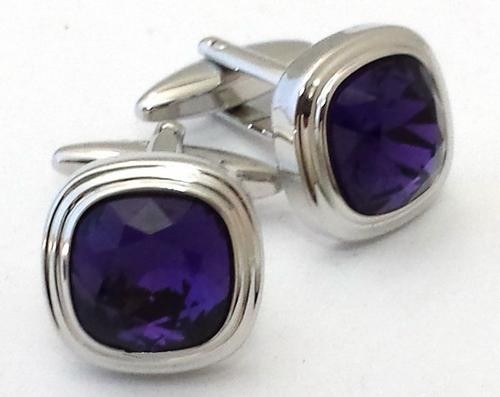 17mm Soft Square Triple Tier Cuff Links Faceted With Purple Fiber Optic Stone