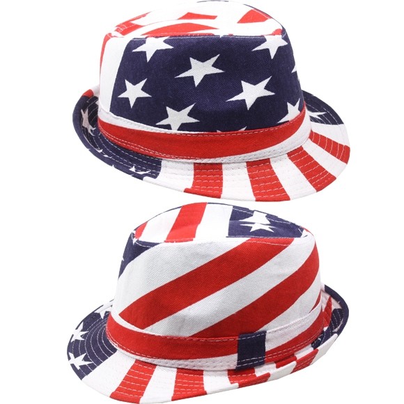 Classic American flag fedora hat. Show your American pride with this American flag design hat! Check out our volume discounts.