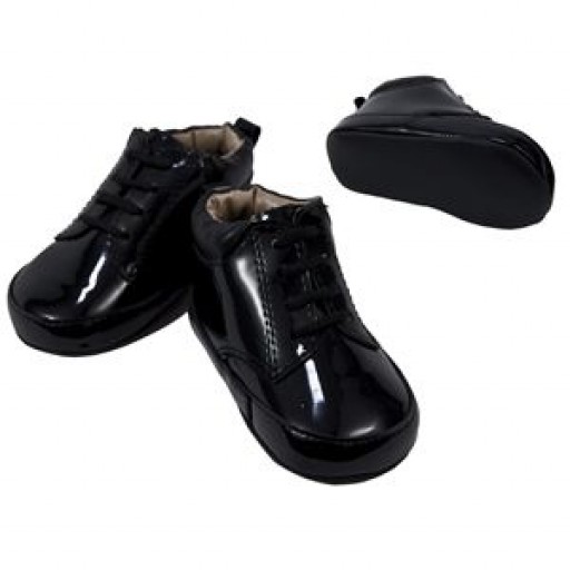 Baby Classic BLACK Patent Leather Lace Up Tuxedo Shoes