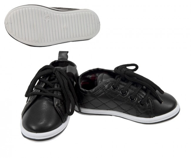 Infant Boys Black Lace Up Tennis Shoes. All men made material. These shoes are made by a manufaturer that only makes baby and infant shoes. Have your child looking and feel their best at any event. Affordable, yet great quality that you will always find at TuxedosOnline.com. A fantastic high quality look for less than the cost of a large designer department store.