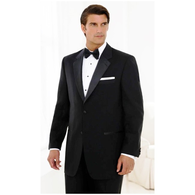 New Tuxedo TWO Button Coat. Microfiber, Single Breasted, Notch Lapel, vented coat with satin lapel and satin covered buttons. Exceptional polyester/ rayon man made fiber material that looks and feels like Super 100s Wool. Perfect for weddings, proms, orchestras, choirs and any other black tie event. Volume discount cannot be combined with any other offer restrictions apply. Shirt, tie and pocket square not included.