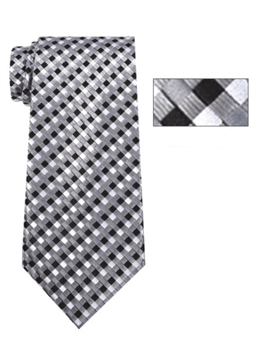 Mens Black and Silver Striped Skinny Necktie with Matching Pocket Square