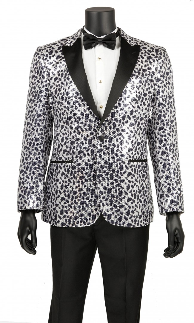Single Breasted, One Button, Peak Collar Sequin Sport Coat With Side Vents And Leopard Print Coat Only!