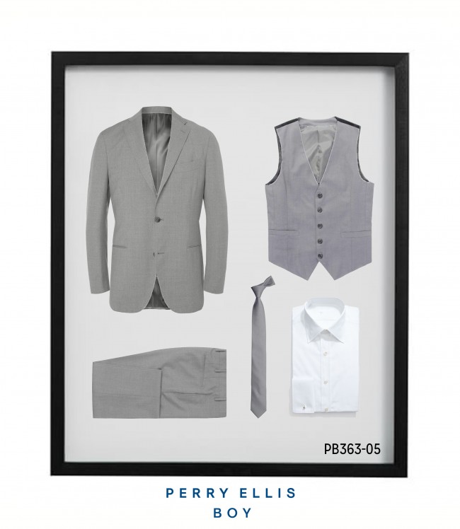 Perry Ellis boys 5 Piece 2 Button Notch Suit Grey
