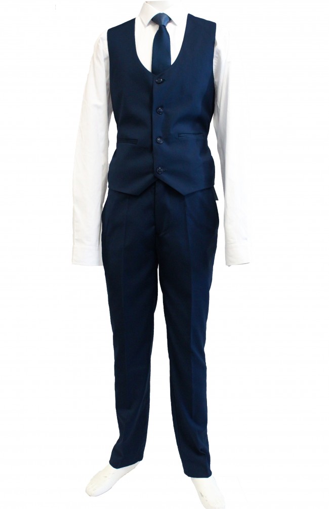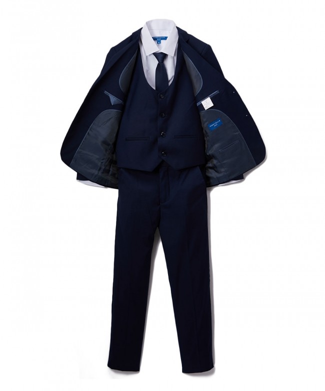 A modern take on a classic suit by Perry Ellis, this 5-piece solid boys suit is great for your next event. A perfect blend of elegance, style and comfort. Jacket - Notch lapel, solid, chest pocket, side flap pockets, inside pockets, two button front closure, Shirt - White button up dress shirt, Tie - Matching tie, Vest - Four button closure, solid pattern, V-neck vest, Pants - Flat front, zip fly, button closure, solid Modern fit