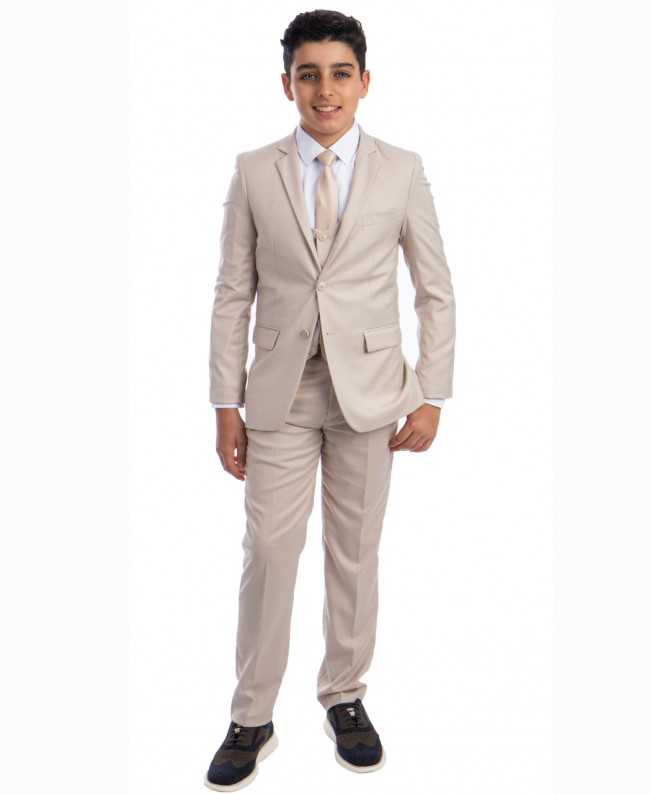 Perry Ellis boys 5 Piece 2 Button Notch Suit Tan