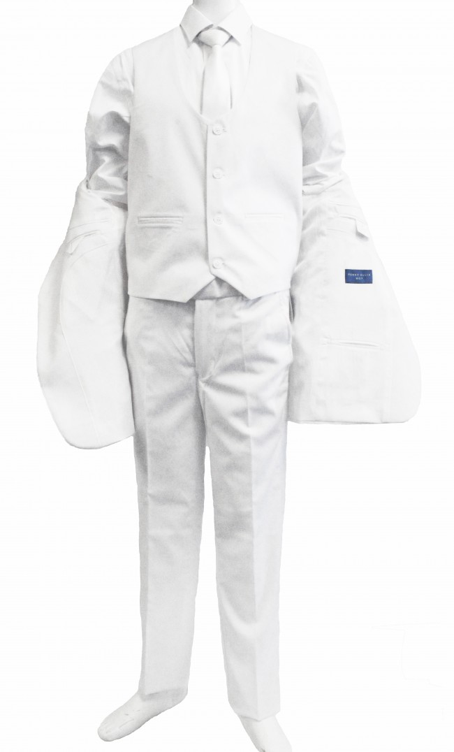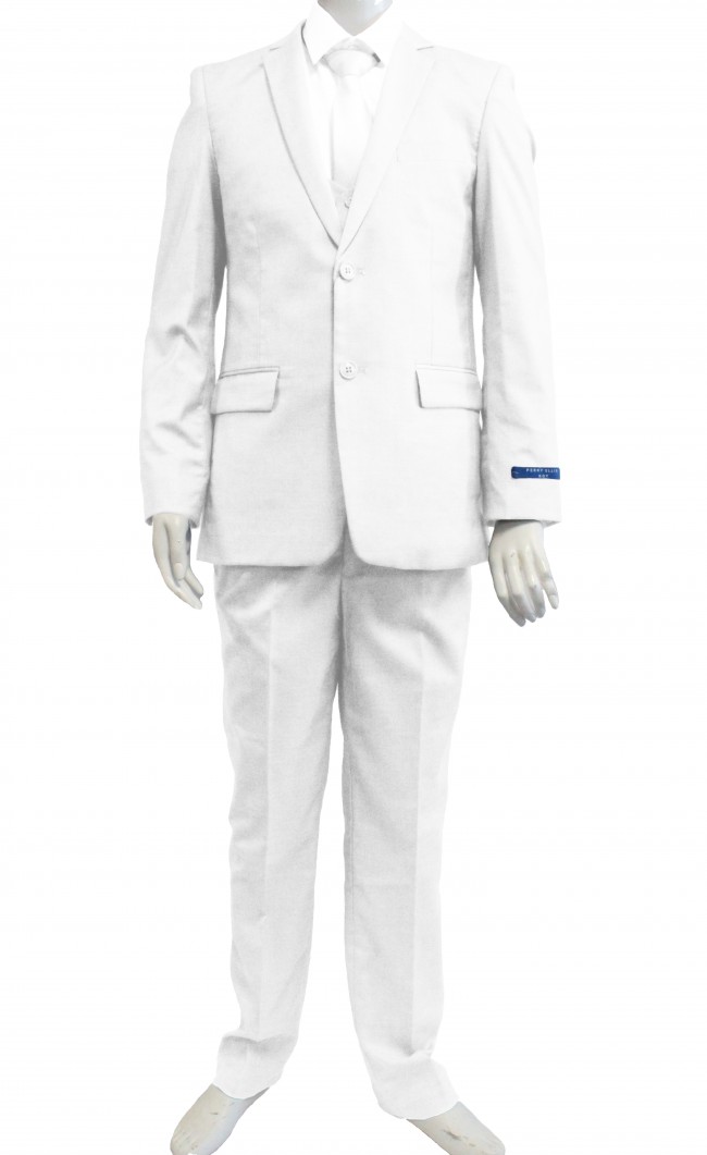 Perry Ellis boys 5 Piece 2 Button Notch Suit White