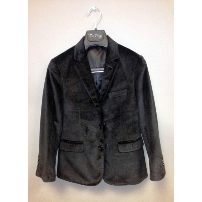 New Boys Black Velvet Sports Coat. Two Button Notch Lapel. 100% Polyester. Vented. Two Inside Pockets. Coat only.