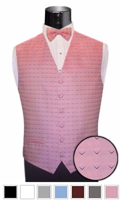 Boys Eternity pattern vest and bowtie made of Polyester satin. Backless adjustable, which means it has an open back with an adjustable strap that goes around the neck and waist. This is a Five button vest .Comes with matching Pretied bowtie. This item should be dry cleaned but can be washed in cold water. Don’t let the price fool you. This is a very high quality vest that retails for $65 or more in most stores. We are the direct importers of the product and can pass on the saving to you. Why rent? when you can own for less. We offer a large selection of colors to accommodate your event.
