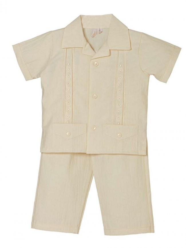 Boys Ivory Guayabera Shirt & Shorts Set