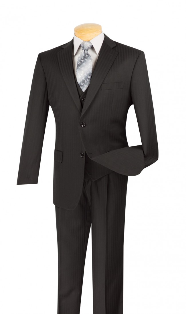 Suit Men's Classic 3 Piece Tone on Tone Stripe Suit with Vest
