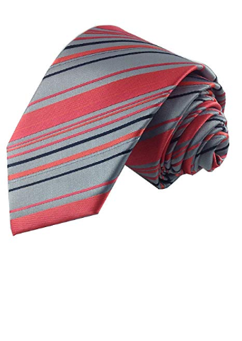 Mens Coral, Gray and Navy Striped Skinny Necktie