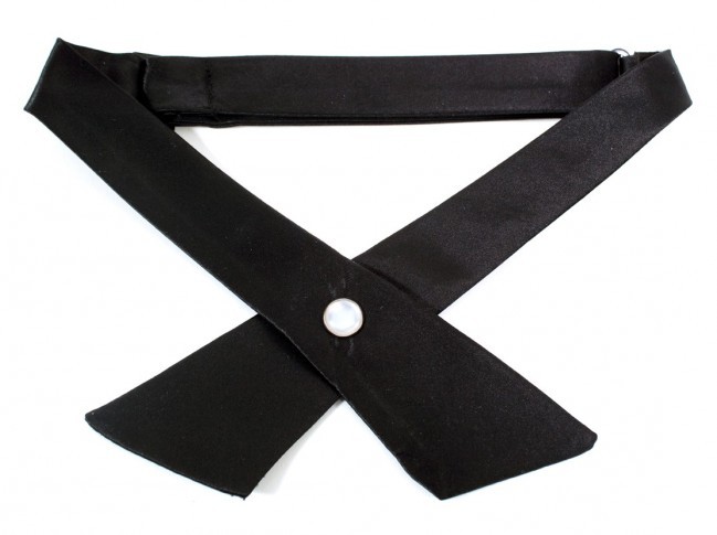 BLACK Satin Crosstie or Continental TIE Large Size to substitute a bowtie for a retro look. Large/XL fits a necksize 16.5"-20.5". Please note, button color varies between white or black.