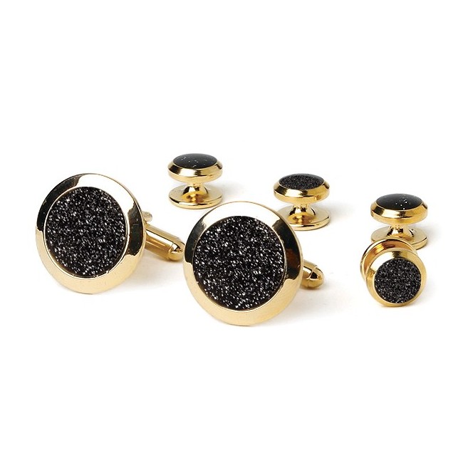 Cufflinks Studs BLACK DIAMOND DUST Cuff Links Set