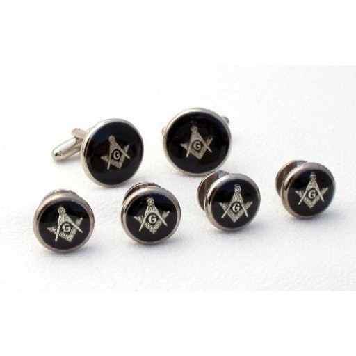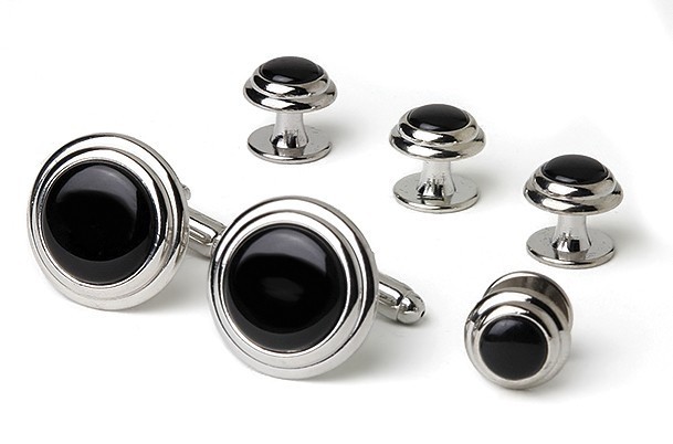 Cuff Links and Studs Two Tier Black Tuxedo Studs and Cufflinks in Gold or Silver. Comes with gift box.
