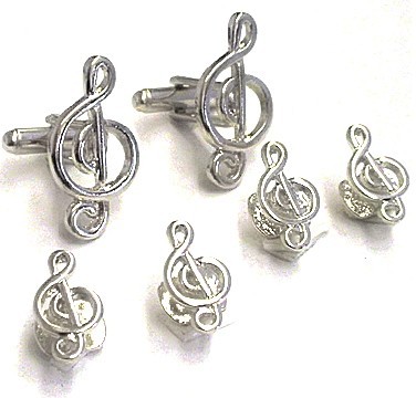 Cufflinks and Studs Formal Set. Musical Treble Clef in Silver finish. They come in a veleveteen gift box.