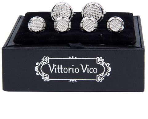 Diamond Pattern Silver Cuff Links and Studs Set by Vittorio Vico