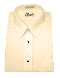 Men’s long sleeve dress shirt. 65/35 polycotton fabric with convertible stud front and reversible cuffs. The shirt has button holes on the cuff that will allow you to wear cuff links. Even though it is not a true french cuff that folds over you can wear cuff links with the shirt. It also has button holes behind the front 4 buttons so you can wear studs. Even though the shirt has no pleats it can be worn as a tuxedo shirt because it can take studs or buttons. This shirt has a top fused laydown collar. Look and feel your best at any event. Perfect for weddings, proms, or any other formal affair. Available in a wide range of sizes. Affordable, yet great quality that you will always find at TuxedosOnline.com. A fantastic high quality formal look for less than the cost of renting or that of large designer department stores. Specially made to withstand numerous washings and pressings.