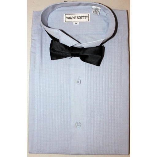 This is a new wing tip tuxedo shirt pleated front does NOT take cufflinks or Studs, comes with a red bowtie. This is a closeout item no returns will be accepted sales are final on closeout items.