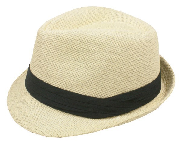 Ivory Fedora Hat with Black Band. Circumference 22.75". Brim around 2". Front Crown 4" (One size fits all).