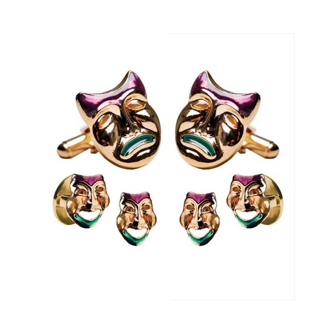 Mardi Gras Comedy Tragedy Faces Cufflinks and Studs Set