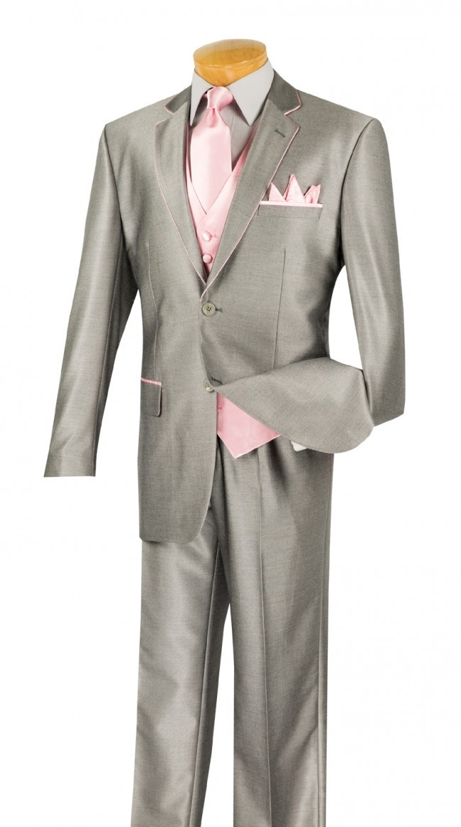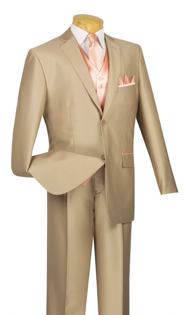 Amazing deal on this 5-piece high fashion men Luxurious wool feel Suit. Single breasted 2 button Notch, trimmed jacket with fancy vest, single pleated pants. 5 pcs Suit with Vest Tie and Hanky. Makes a great suit for Prom, Wedding or any other Formal Event.
