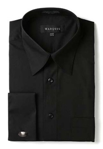 A good quality shirt made of a Polyester and Cotton blend. The cuffs are french cuffs meaning they can be linked using cuff links. Cuff links are included with the shirt, but may be interchanged with a different set. The shirt buttons do not take any studs, and can be buttoned like normal.