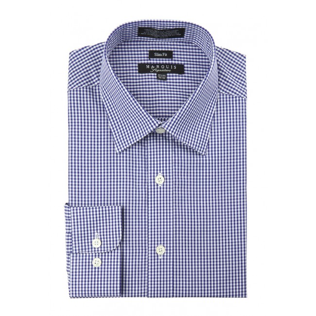 This shirt is made of a Cotton and Polyester blend. It is patterened with a gingham checker pattern. The shirt does not take cuff links or studs.
