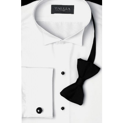 Tuxedo Shirt Men's White Slim Fit Wingtip Collar with Black Bow Tie Studs Convertible French Cuff