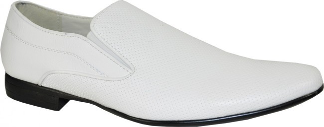 White slip-on Dress Shoes. Very comfortable dress shoes. Although these shoes are not made of leather they are made of a durable man made fabric called PVC. Look and feel your best at any event. Perfect for weddings or any other formal affair. Available in a wide range of sizes. Affordable, yet great quality that you will always find at TuxedosOnline.com. Show up to your formal event in these sleek dress shoes that cant help but radiate a classic appeal. A fantastic high quality formal look for less than the cost of renting or that of large designer department stores.