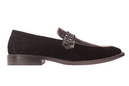 Mens Black Suede Slip On Shoes by Antonio Cerrelli Elite. Suede Lace Up. Luxurious look and feel. Snake Skin Pattern on Tongue. Soft and Comfortable Light Weight. Great to wear as Formal, Dresssy, or Casual.