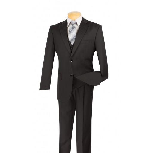 Charcoal Windowpane Two Button Notch Suit. Luxurious Wool Feel. Single Breasted, notch lapel with stitch, slim fit, side vents, flat front pants, Poly/Rayon. Pants are a 6 inch drop. Meaning, the waist size is 6 sizes lower then the coat size. For example, if you order a 40R coat you will receive 34 waist trousers.