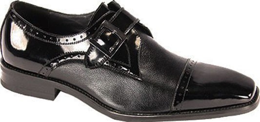 Mens Leather Upper Dress Shoe with Buckle by Giorgio Venturi. Cap toe monk strap with silver buckle detail. It has a polished upper and two-tone non-leather sole with slip-resistant rubber insert.