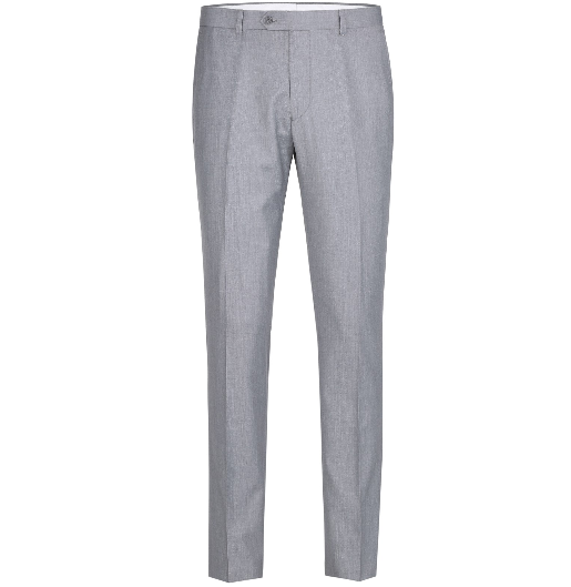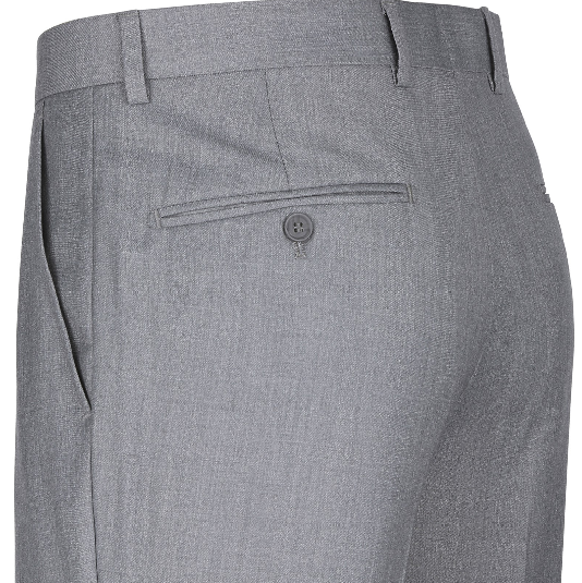 This tuxedo comes in a brush textured gray color. Made of Poly/Rayon Fabric, a soft blend that is meant to resemble a lighter wool that feels and looks like real 140s wool. The lapel type is a tapered shawl lapel, and the tux closes with one button. Pants are the same color and flat-front, meaning they are not pleated. The coat's interior has three pockets, and the trousers' front pocket features a discreet pocket inside. The trousers are unhemmed and come in a 6-inch drop, meaning if your coat size is 42", the waist of the pants will be 34". The tux is a slim fit cut. Coat and pants only, Vest is NOT included.
