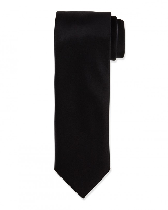 Self tie necktie in BLACK polyester satin material. Tie measures 3 1/4 inches at the widest point and 57 3/4 inches in length untied. This tie is great for many different uses including formal wear or as a uniform tie for catering or school uniform tie . Even though it is not silk it is a very soft fabric and can be tied very easily and makes a nice knot. It can be used for weddings and proms and all black tie affairs. This tie is also the correct width for military uniforms such as mess dress. It is durable and can be purchased for large groups at a volume discount. For volume discount pricing you can cal or email us.