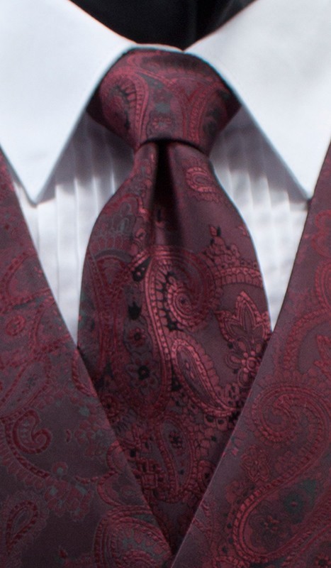 Paisley pattern self tie necktie in All colors polyester satin material. Tie measures 3 3/4 inches at the widest point and 57 3/4 inches in length untied.