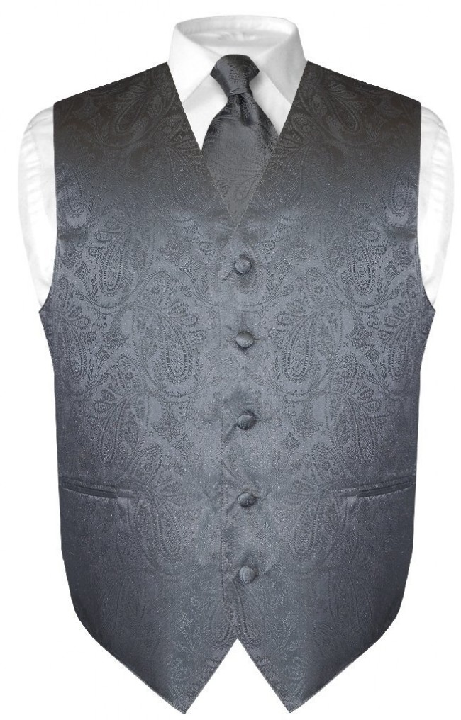 Mens Paisley Tone On Tone Charcoal Grey Vest with Tie Set