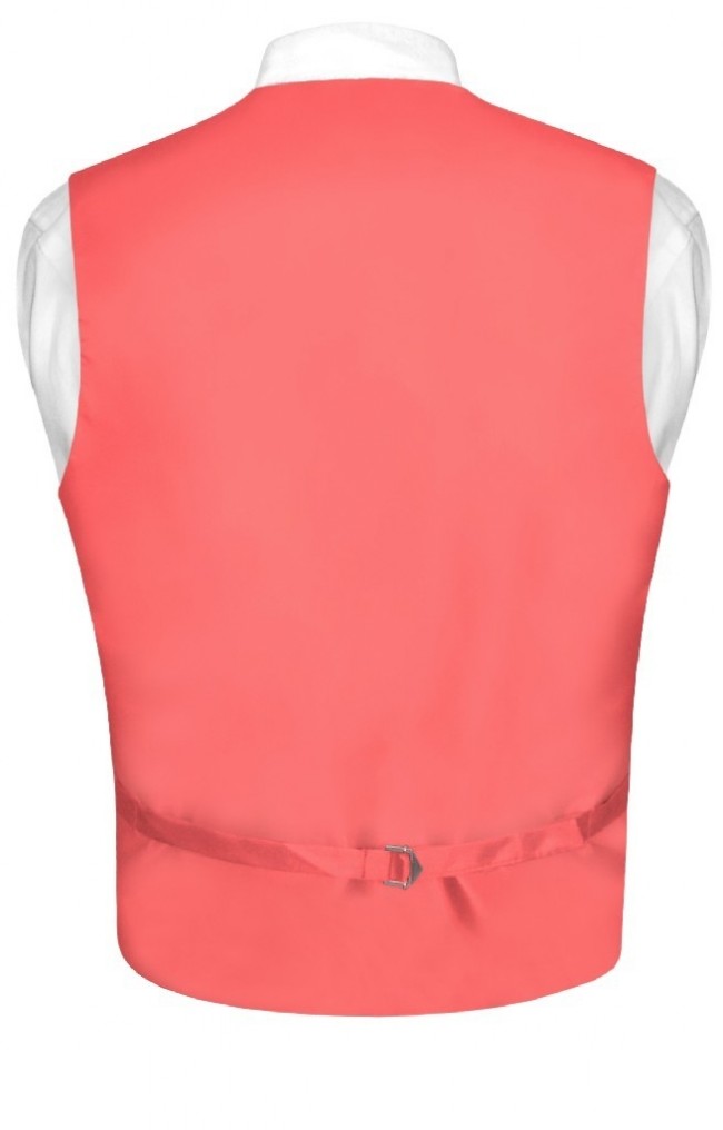 Coral Paisley tone on tone Vest with Matching paisley self tie Neck Tie, made from The Same Material For a Perfect Match with belted adjustable back for a perfect fit.Full back vest with five buttons and two real pockets. This vest is Available in our listings in the following sizes: XS (Chest Size: 36), S (Chest Size: 38), M (Chest Size: 40), L (Chest Size: 42) , XL (Chest Size: 44), 2XL (Chest Size: 47), 3XL (Chest Size: 50), and 4XL (Chest Size: 53).