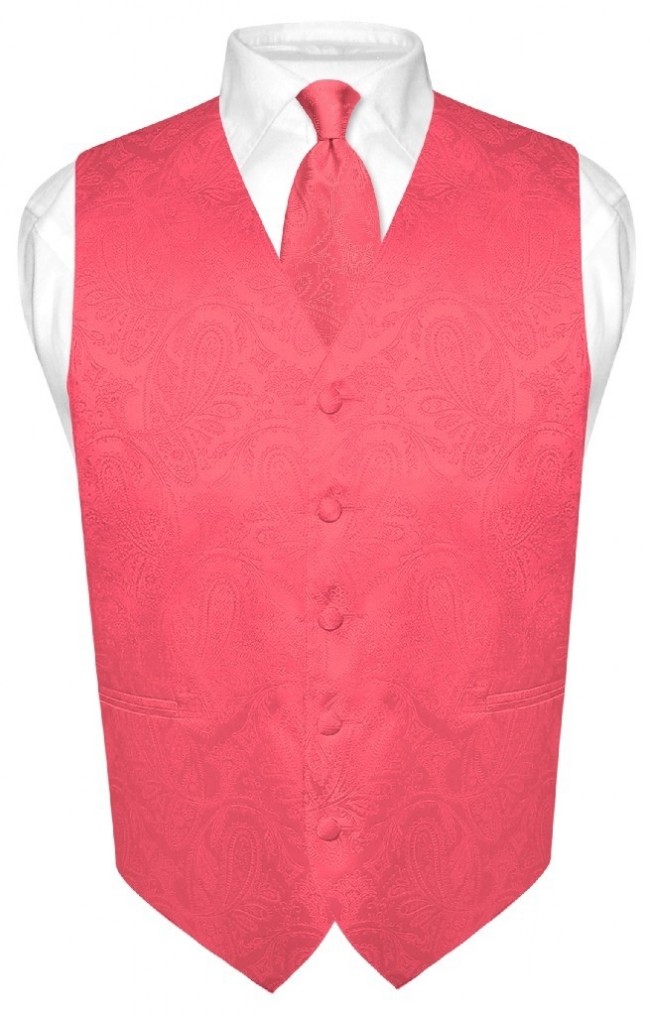 Mens Paisley Tone On Tone Coral Vest with Tie Set