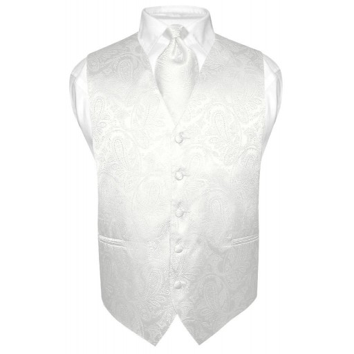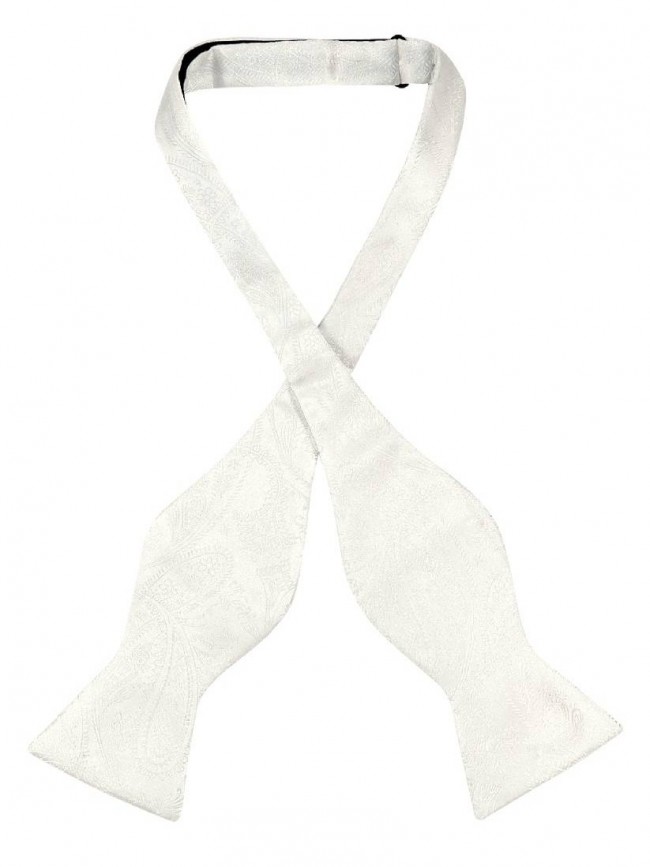 Mens Paisley Satin Self tie Bowtie Off White Ivory