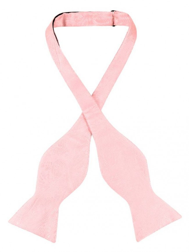 Mens Paisley Satin Self tie Bowtie Rose Pink