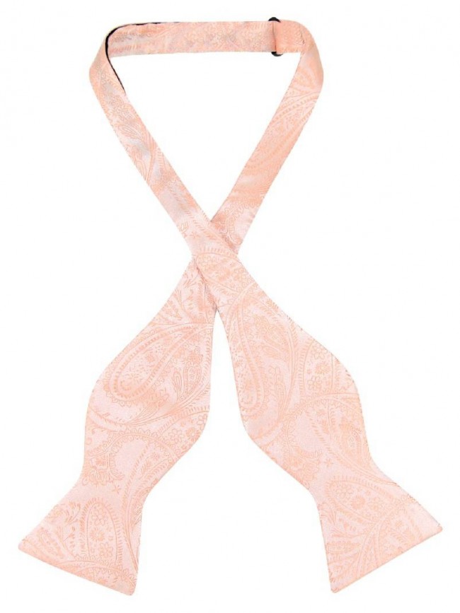All Colors Paisley Satin Self tie Bow tie. This a banded adjustable tie which means it has an adjustable band that goes around the neck and clasps under the bow tie. Available in mens size. MENS tie measures 2.5 in wide and 4.5 in long, adjusts from 10 in to 19.5 in around the neck.