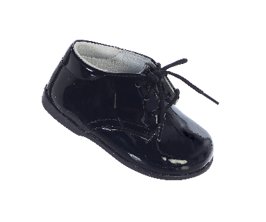New Shinny Infant Boys Tuxedo Shoes Patent leather shoes that lace up. All man made materials but a very comfortable shoe.