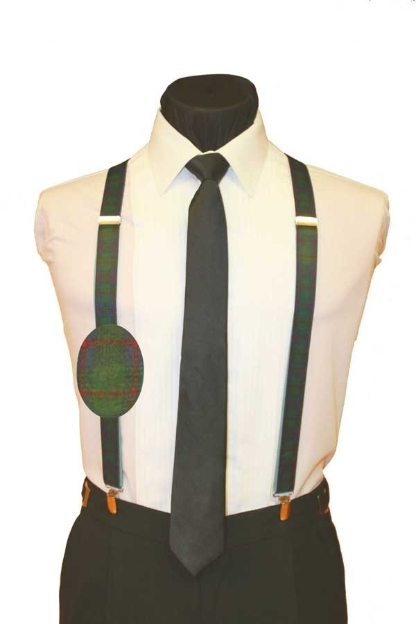 Nylon HOLIDAY CHRISTMAS PLAID HUNTER GREEN Clip Suspenders, 1 inch wide X-Back nylon material suspenders with silver clips. Measure 32.5 inches long from end to end adjusted all the way in and 48 inches long from end to end adjusted all the way out. Durable and strong adjustment clips, come in a small box. Can be worn for formal or casual attire. Quality crafted made in the USA. Volume order discounts available. Perfect gift item to bring in the holidays.