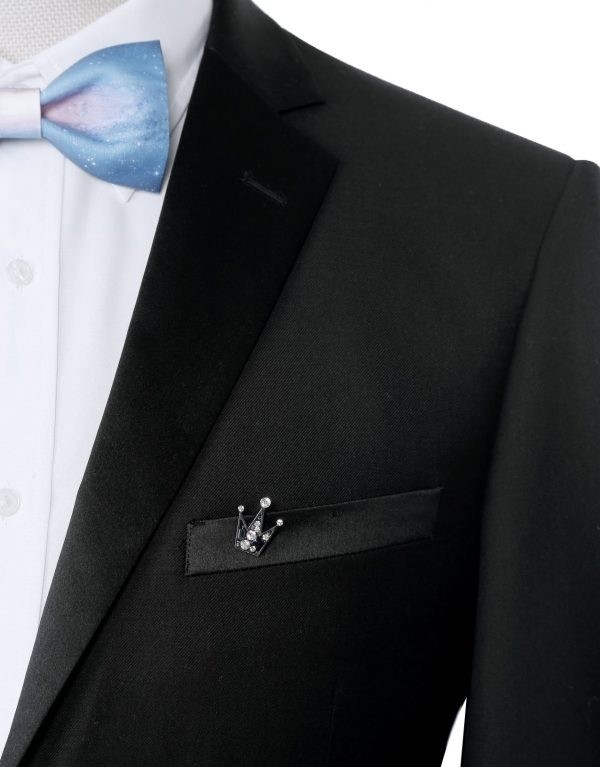 Slim Fit Tuxedo Coat Only TWO Button Tuxedo Microfiber, Single Breasted, Notch Lapel, vented coat with satin lapel and satin covered buttons. Exceptional polyester/ rayon man made fiber material that looks and feels like Super 100s Wool. Perfect for weddings, proms, orchestras, choirs and any other black tie event.
