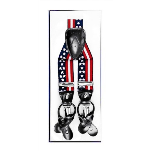 Nylon KRIS KRINGLE HOLIDAY RED Clip Suspenders, 1 inch wide X-Back nylon material suspenders with silver clips. Measure 32.5 inches long from end to end adjusted all the way in and 48 inches long from end to end adjusted all the way out. Durable and strong adjustment clips, come in a small box. Can be worn for formal or casual attire. Quality crafted made in the USA. Volume order discounts available. Perfect gift item to bring in the holidays.