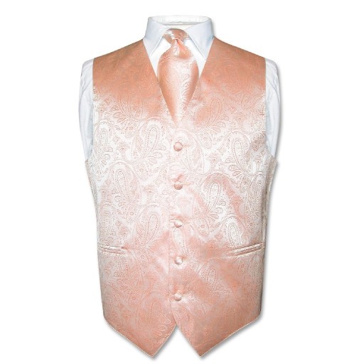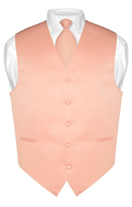 Mens Solid Satin Peach Vest & Self Tie Necktie Set