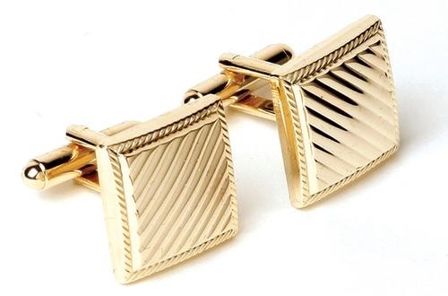 Square Cufflinks with Diagonal Lines Gold Finsh