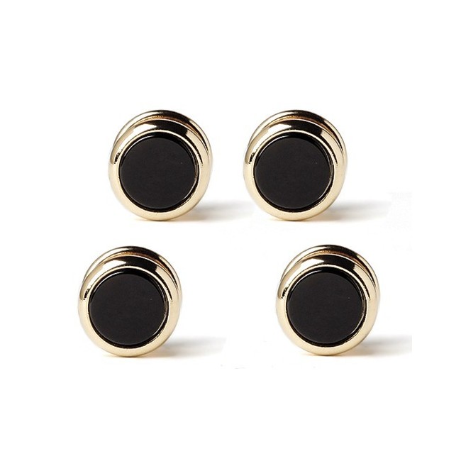 Genuine Onyx Classic STUDS for Tuxedo Shirt. These are also know as tuxedo shirt buttons. These shirt studs are made of a composite material and are 14k gold plated. The stone in the middle is genuine Onyx.
